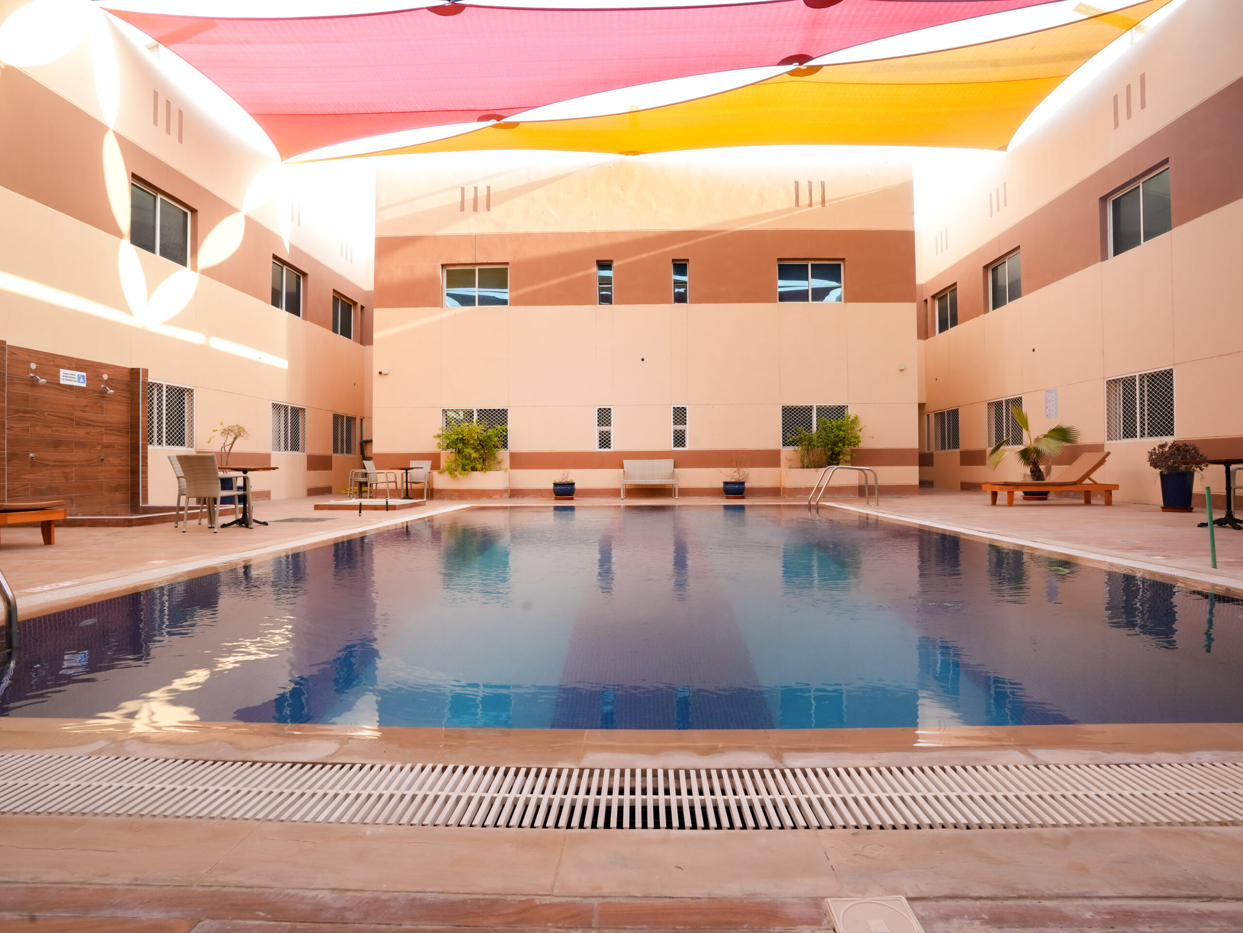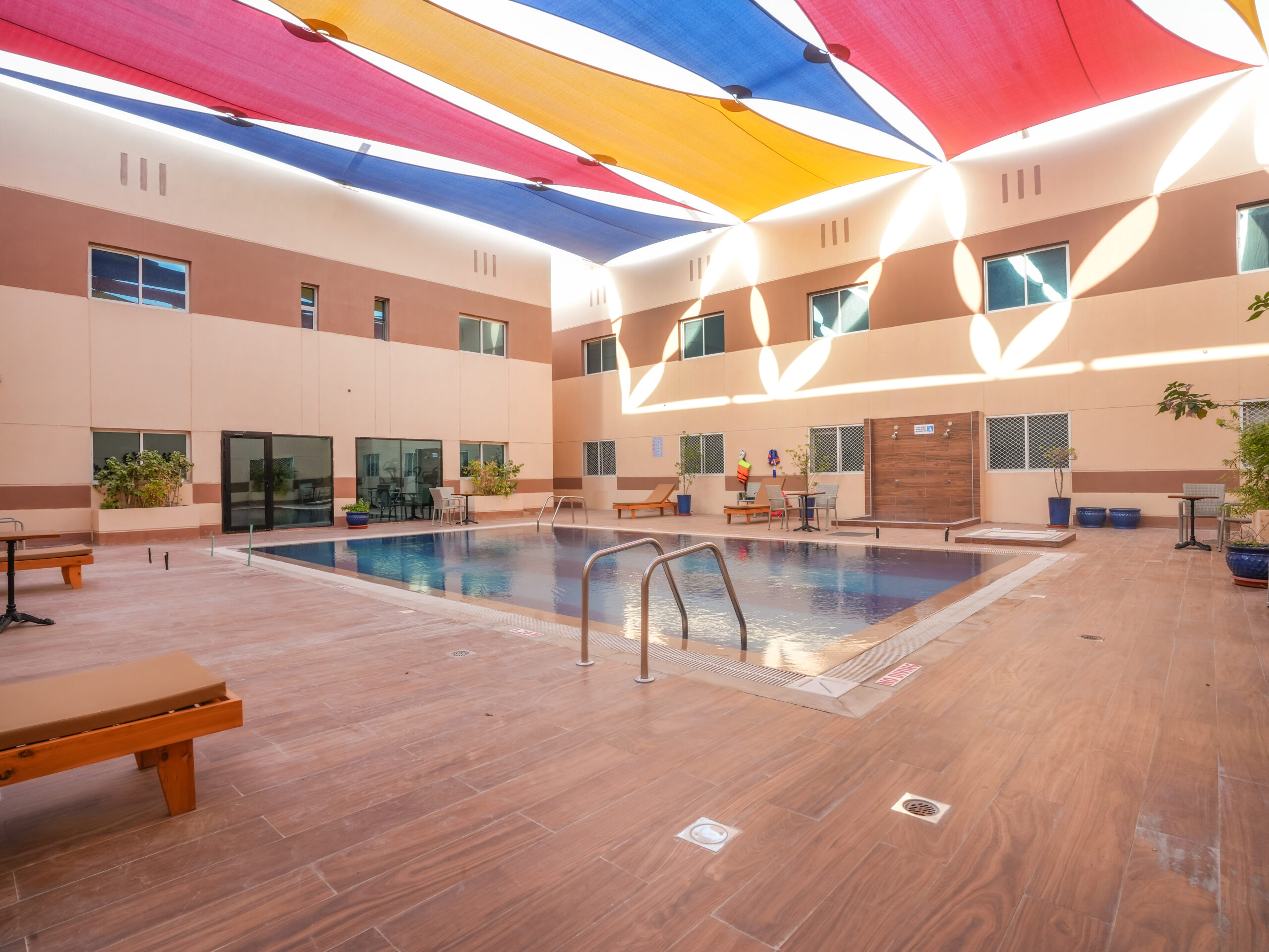 Brand new state of the art apartments complex in Mazyad Al Ain. The complex is fully furnished and ready for rent. It has 80 executive spacious bedroom studios and 8 BHB for monthly, yearly , rent. The amenities include a swimming pool, gym, laundry, cafeteria, as well as daily housekeeping.